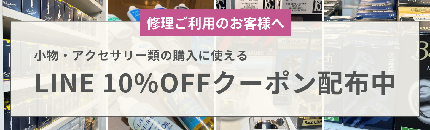 ◆定休日変更のお知らせ◆ いつもご利用いただき誠にありがとうございます 2025年8月1日より定休日を以下の通り変更いたします 定休日:毎週水曜日 営業時間の変更はありません 何卒よろしくお願い申し上げます 店舗での修理¥10,000(税込, 割引後) をご利用いただいたお客様へ小物・アクセサリー類の購入に使えるLINE 10%クーポンをプレセント中です!!! LINEで友だち登録していただいている方限定のクーポンですので、この機会にぜひご登録ください♪ 創業40周年を迎えたユリ楽器は2024年3月烏丸丸太町に移転しリニューアルオープンしました。 新店舗は地下鉄丸太町駅から徒歩3分という交通アクセスも良く、皆様に気軽にお立ち寄り頂き今まで以上に愛される楽器店を目指します。 系列店に管楽器の修理専門店ウインド・スタイを持ち、多数の熟練技術者が修理・調整にあたっています。 私達は、お客様との会話を大切にして、一人一人にご納得いただける商品や修理のご提案に努めます。 本番前などの急なトラブルにもできる限り柔軟に対応いたしますので、まずはご相談ください。 どこよりも速やかに丁寧に対応し、長く長くおつきあいしていただける店でありたいと思います。 店舗情報 営業時間 11:00~19:30 (休憩:12:30~13:30) 定休日 水曜 所在地・アクセス 〒604-0002 京都市中京区鏡屋町51-1-2F 地下鉄烏丸線「丸太町駅」6番出口より徒歩3分 お問い合わせ LINEもご利用頂けます!営業時間内であればスタッフがチャットで直接ご対応します。 以下の「友だち追加」ボタンからご登録ください。